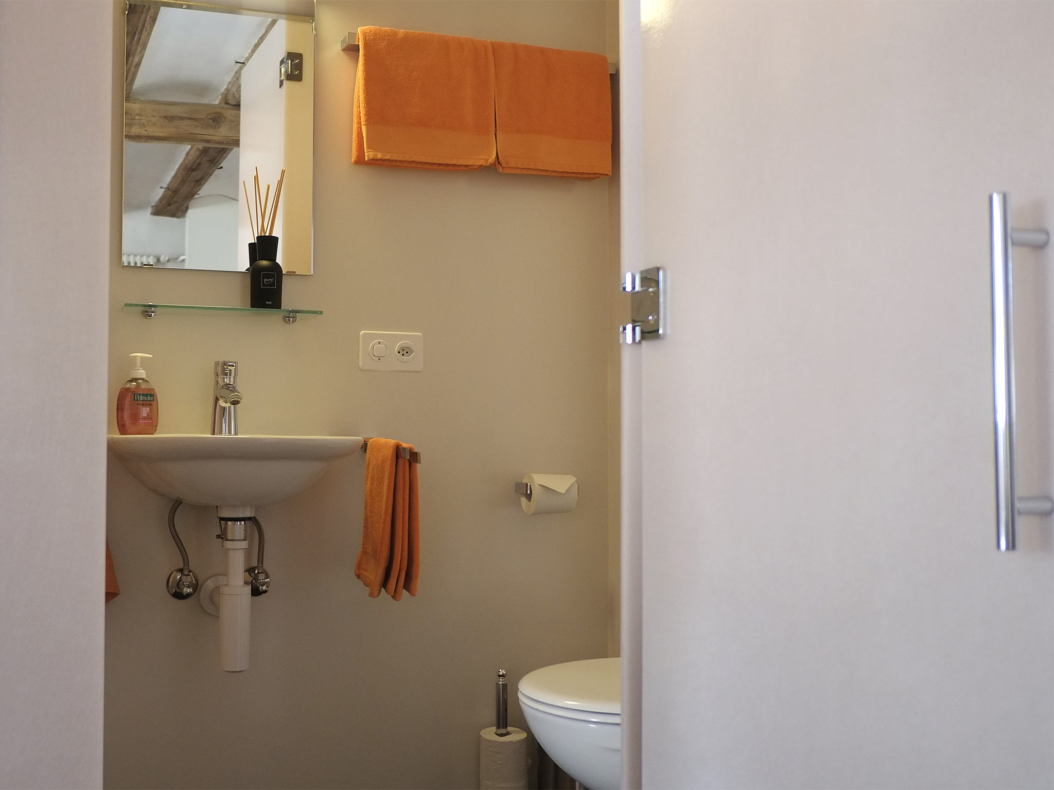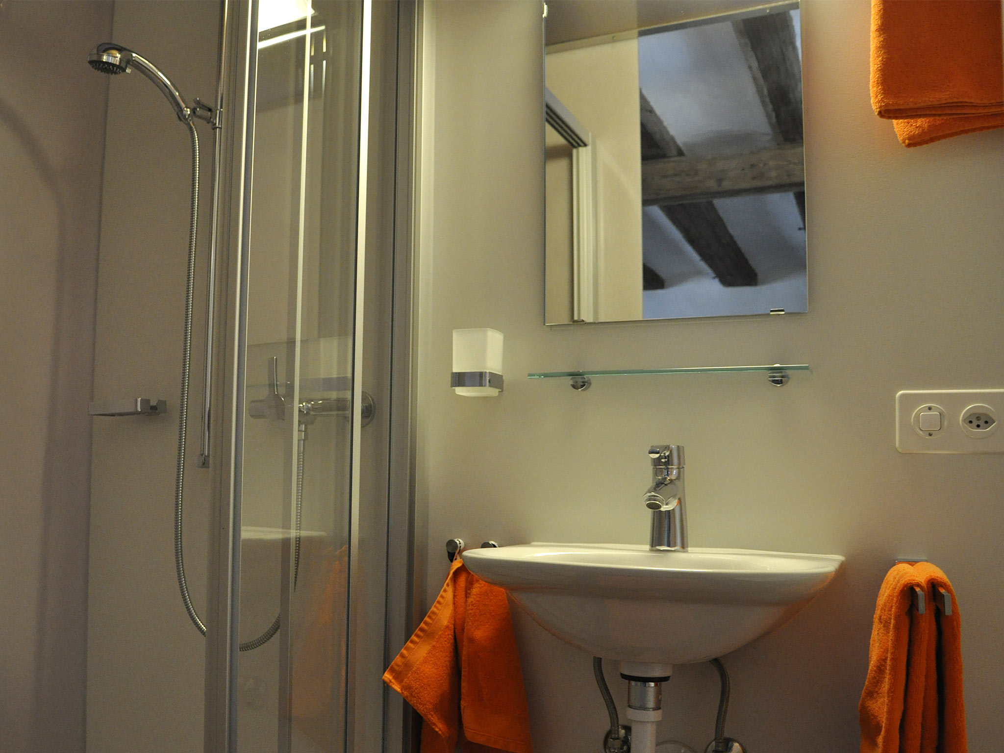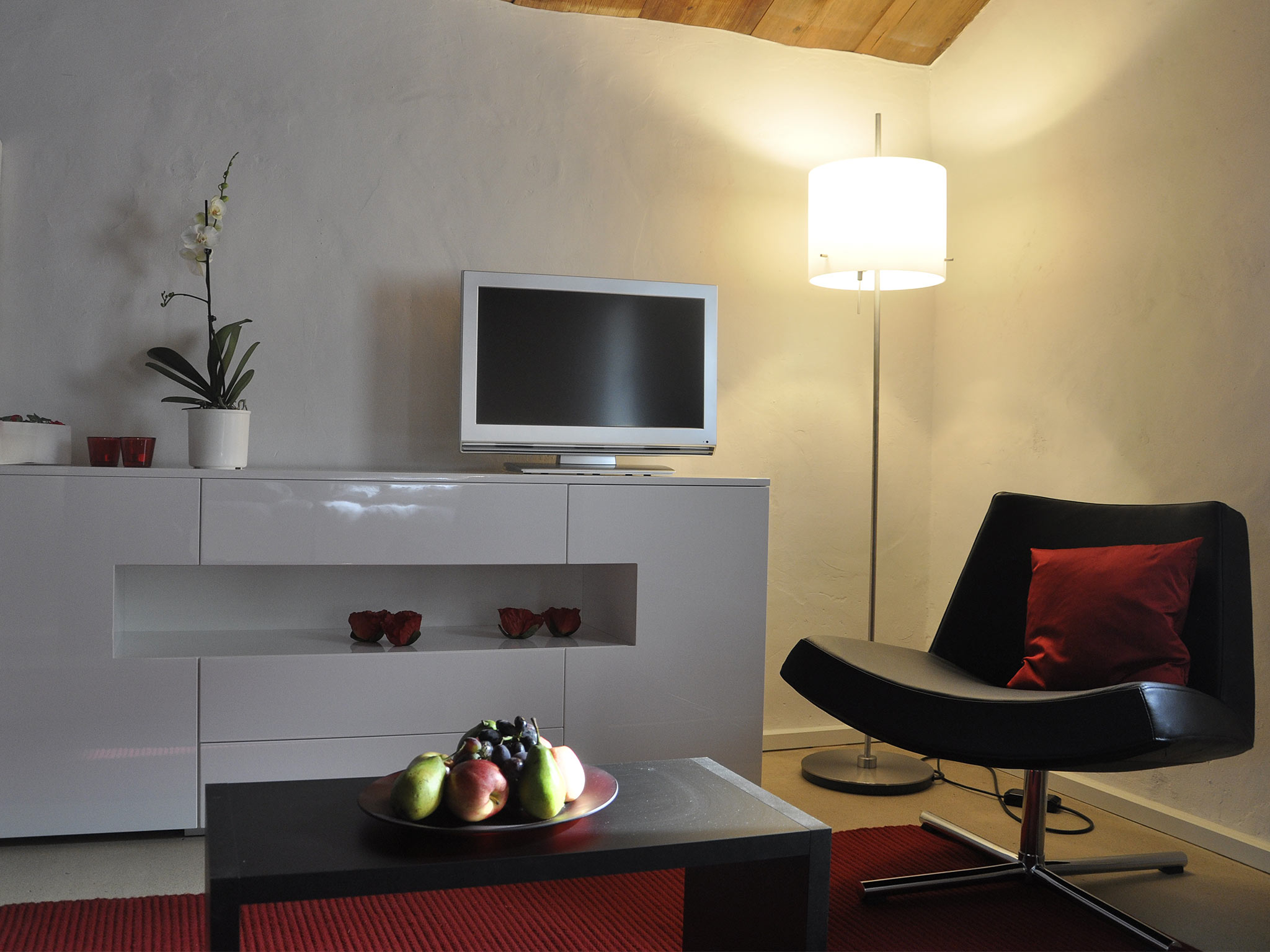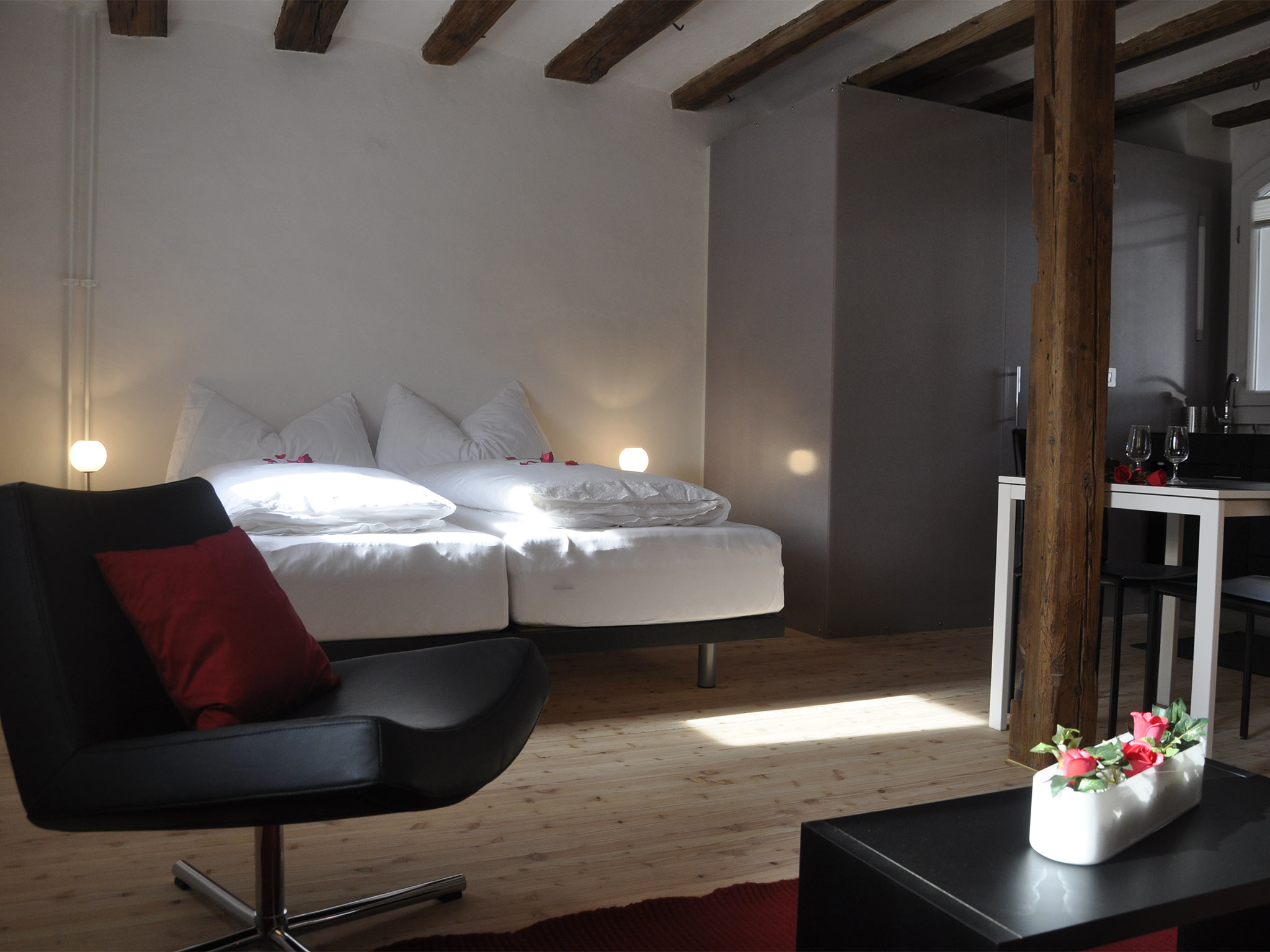 Die kleine Wohnung erwartet Sie mit einem stilvoll eingerichteten Ess- und Wohnbereich. Die historische original Bausubstanz trifft auf zeitgemässe Möbilierung und Infrastruktur, mit komfortablern Hüsler-Naturbetten und mit einer kleinen Küche. Free WiFi und ein Flachbild-TV sind selbstverständlich. Ihr Bad ist mit einer Dusche ausgestattet. Die vorgelagerte Veranda lockt mit Aussicht über das Dorf und die lokalen Berge. Für Fotos «weiterlesen»