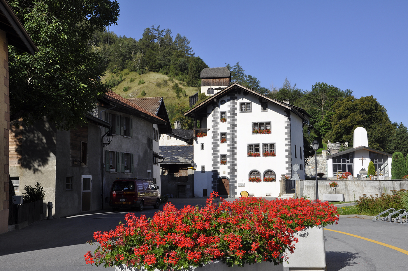 Die ursprüngliche Fenstergliederung wurde bei der Renovation wieder hergestellt. Sie verrät uns das feine Gespür für Fassadengliederung in der damaligen Zeit. Interessant sind auch die beiden Rundbogenfenster des im Parterre liegenden Saales.