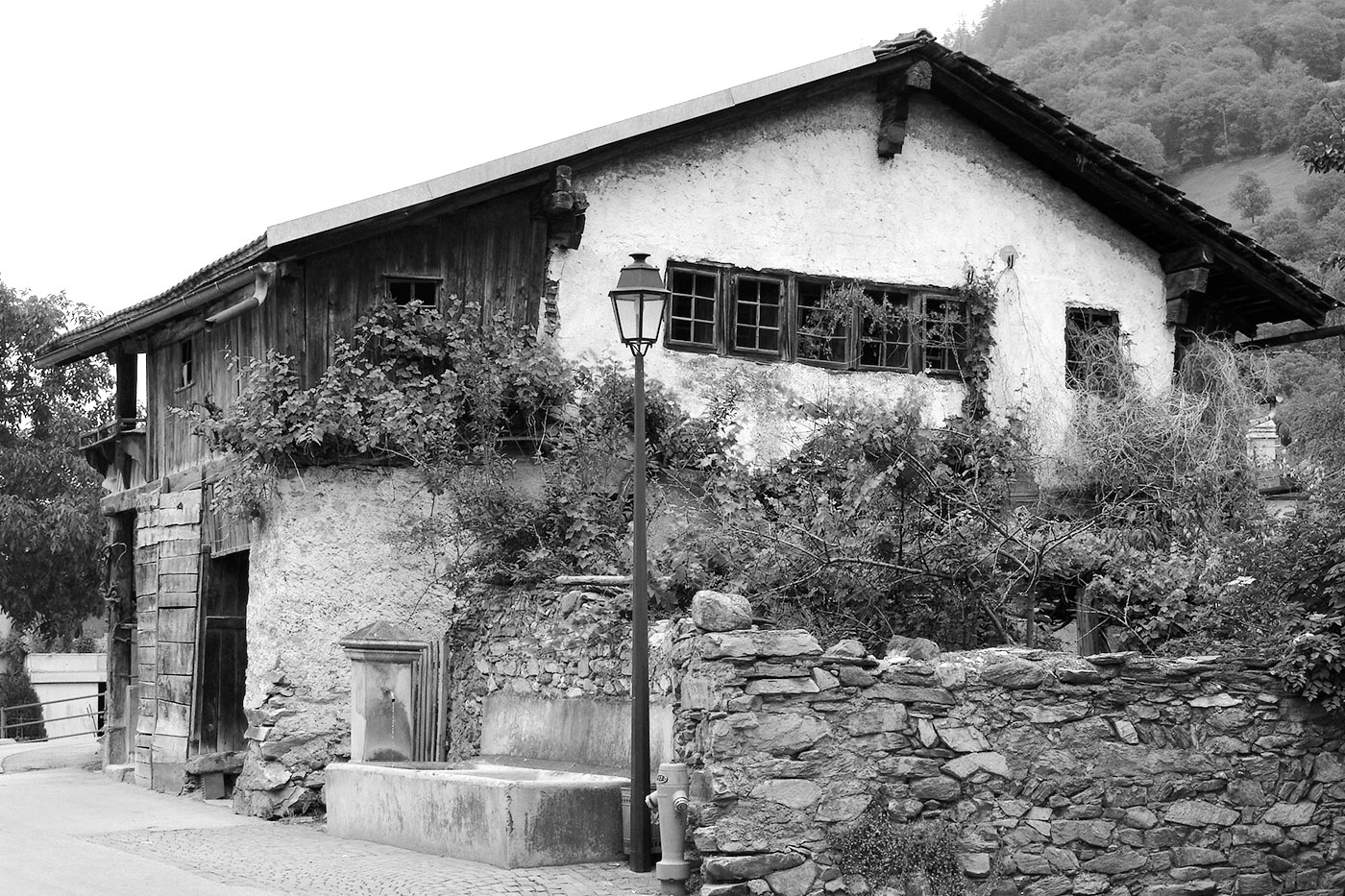 Spezielles: Schöner Vorplatz an einem Dorfbrunnen